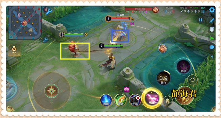 另外,二技能的额外降低双抗效果可以理解为纯加强且对前排的威胁非常大,因为明世隐并不会单独行动,只要牵到对方英雄,队友大概率都会在附近。